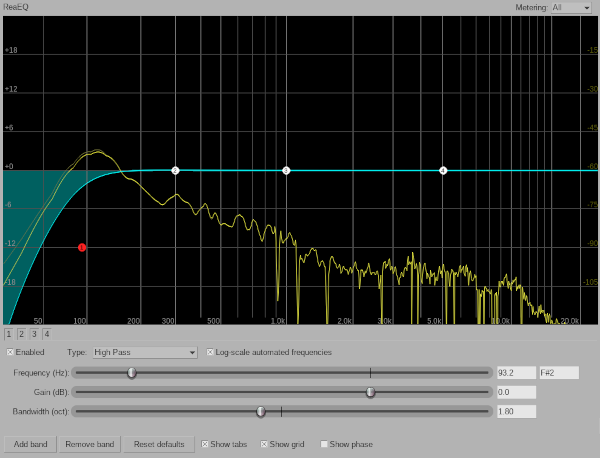 For the very first step, we apply a simple but extremely effective High Pass Filter at around 120 Hz. This removes rumble, plosives, and low-end energy that usually doesn’t belong in a lead vocal. Even if you can’t hear these frequencies clearly, cutting them out provides more headroom and sets up the compressors to work more efficiently.