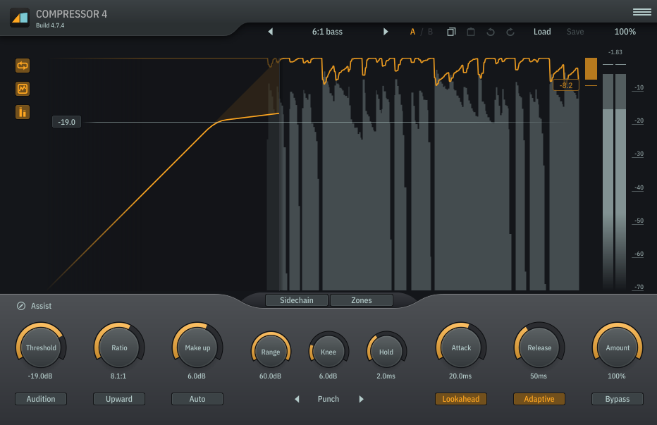 After compression, the level of the bass will likely be reduced, so you’ll need to use the make-up gain to bring it back to the desired volume. This helps ensure that the bass is still loud enough to be heard in the mix.