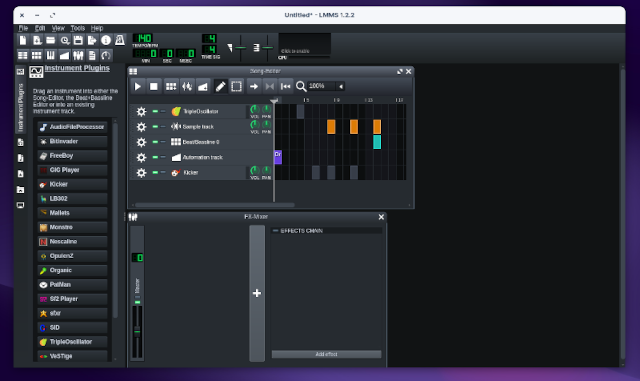 LMMS (Linux MultiMedia Studio) is a completely open-source DAW aimed at beat-making and composition. It’s not a full recording DAW like Ardour or Reaper, but it excels in MIDI sequencing and electronic production.