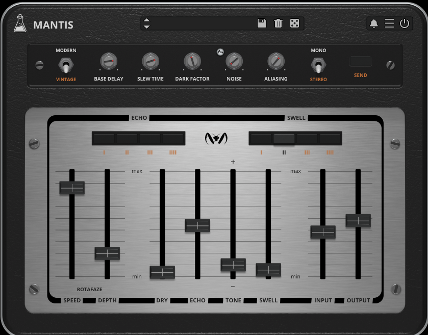 Whether you're chasing thick slapback echoes, gritty lo-fi delays, or immersive modulated trails, Mantis excels as both a creative effect and a tone-shaping tool, bringing a touch of analog nostalgia to any track.